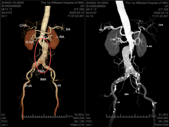 入院后,我院血管外科李喜春主任团队为张大娘进行了全面评估。考虑到患者高龄、病变位置复杂,团队为其量身定制了“右髂内动脉栓塞+腹主动脉+双侧髂动脉一体支架置入术”的个体化微创方案。