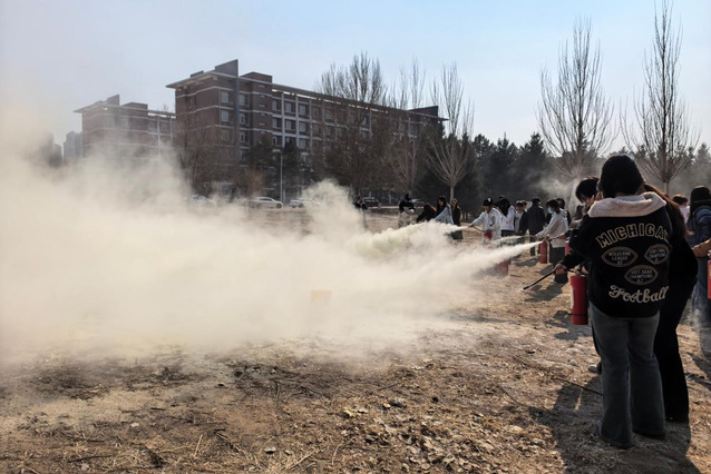 保卫处董晨老师开展灭火器使用现场教学