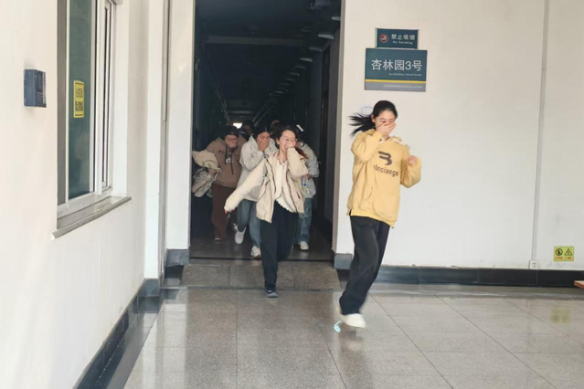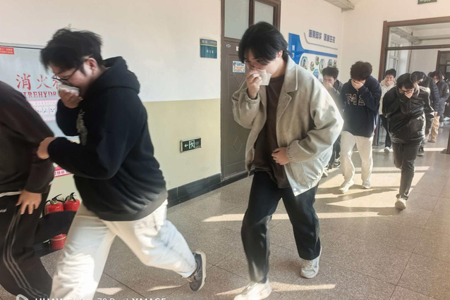 为保障演练安全有序开展,防范疏散过程中各类安全隐患,学院学工办提前制定详细演练方案,明确疏散路线与人员分工。演练现场,警报响起后,全体学生听从指挥,迅速用湿毛巾捂住口鼻,低姿弯腰有序撤离寝室,整个疏散过程快速、规范、安全,顺利抵达指定集合地点,达到预期演练效果。
