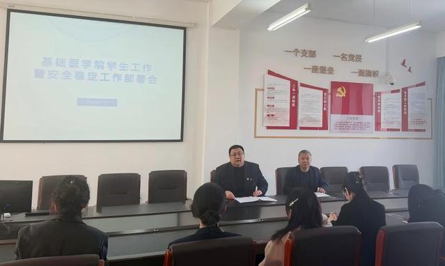 3月25日,基础医学院召开学生工作暨安全稳定工作专题部署会,贯彻落实学校有关部署要求,系统谋划并全面部署学院下一阶段学生重点工作任务。学院党委书记潘洪明、党委副书记吕钢及全体辅导员参加会议。