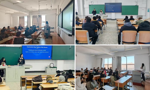 结合国际教育特色,国际教育学院积极拓展开展多项针对性安全活动,织密校园安全防护网络。3月27-30日,国际教育学院面向全体留学生开展了网络安全专题教育,针对用网安全、快递收取、电信诈骗等高发安全问题,通过案例警示、反诈宣传、知识普及等方式,提升学生网络安全防范意识,守护个人信息和财产安全;开展跨境安全与法治教育,结合留学生涉外生活需求,讲解出入境安全、涉外法律法规、文化差异防范等内容;同时,通过班级群,常态化推送安全警示信息、安全知识科普,营造“人人讲安全、事事为安全、时时想安全、处处要安全”的浓厚氛围。