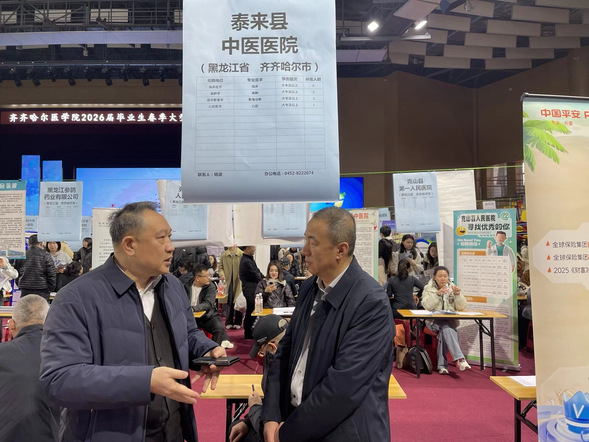 为深入落实国家、黑龙江省及学院关于毕业生就业工作的相关部署,扎实推进“稳就业”“保就业”工作,医院党委高度重视,积极响应“访企拓岗促就业”专项行动号召,近日,我院党委书记孙茂林、党委副书记张娜、副院长孟凡辰、学生工作办公室主任谭欣带领2026届本科、研究生毕业生共同参加了齐齐哈尔医学院2026届毕业生春季大型双选会,以实际行动为毕业生就业保驾护航。