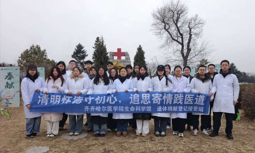 为深入推进“三全育人—实践育人”工作走深走实,厚植医学生人文素养,引导青年医学生敬畏生命、坚守医学初心,4月3日,齐齐哈尔医学院基础医学院第一党支部、遗体捐献登记接受站组织30余名基础医学和生物学专业硕士研究生、临床医学专业本科生代表,参与由齐齐哈尔市红十字会主办的“2026年遗体和眼角膜捐献者清明追思纪念”活动,以寄哀思、传敬意、践医心。