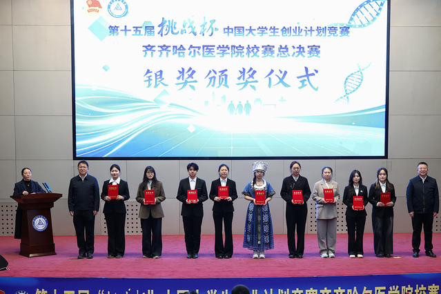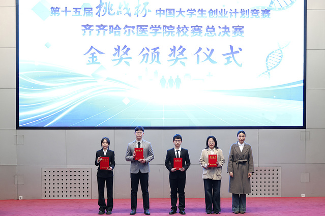 哈尔滨工程大学、哈尔滨医科大学、齐齐哈尔市企业家同本校专家共同担任校赛总决赛评委。经过项目自述与评委问辩的激烈角逐,4个项目凭借卓越的创新性和扎实的科研成果摘得校赛金奖,9个项目荣获银奖。经过前期赛程,17个项目荣获校赛铜奖;学院共有50个项目获得推报省赛资格。评审专家组认为本届作品选题广泛,更加贴近社会难点痛点,基础研究也有了更深厚的实践基础。