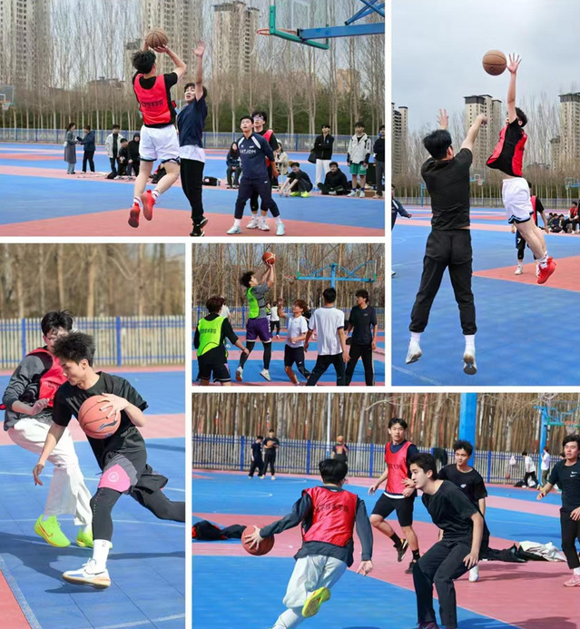 开幕式现场,气氛热烈非凡。来自大学生艺体团声乐部的歌手们率先登场,用嘹亮的歌声与动感的旋律点燃全场,为比赛注入了无限活力,也为学校80周年华诞送上青春礼赞。随着裁判一声哨响,参赛队伍迅速进入状态,在赛场上展开激烈角逐。本次比赛历时三天,赛程紧凑、赛制丰富,小组赛、八强赛、四强赛、季军争夺赛及决赛层层递进,每一场对决都是实力与意志的较量。赛场上,球员们灵活走位、默契传球,时而突破重围、飞身投篮,时而精准防守、果断拦截,场下掌声、欢呼声接连不断,青春热血在球场尽情绽放,为学校八十华诞平添一脉蓬勃气象。