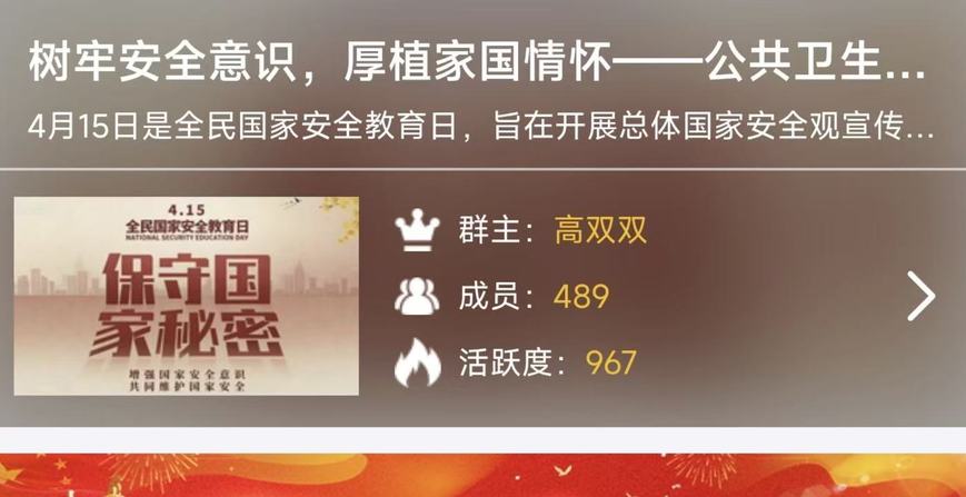 为深入贯彻总体国家安全观,切实增强学生国家安全意识与责任担当,公共卫生学院于2026年4月9日至4月15日组织开展了“树牢安全意识,厚植家国情怀”4·15全民国家安全教育日系列主题活动。