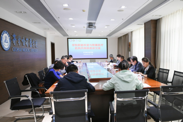 为深入推进附属医疗机构高质量发展共同体建设,全面提升教育教学、科学研究与研究生培养质量,4 月 17 日上午,学院在图书行政楼1804会议室召开职能科室与附属医疗机构共同体座谈交流会。学院党委副书记张可勇出席会议,医院管理处、人事处、科研处、研究生处、教务处负责人,各附属医疗机构党政负责人及分管教学、科研、人事、研究生工作相关同志参会,会议由医院管理处副处长许伟岚主持。
