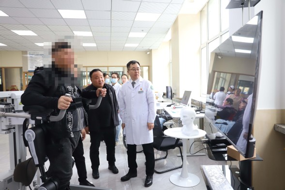 学术讲座结束后,我院副院长刘忠锦带领翔宇医疗营销中心总监梁永强及其团队,前往住院综合楼一楼脑机接口实验室实地参观并观看技术演示。作为中心的核心技术支撑,此次我院同步引入全省首台非侵入式脑机接口下肢外骨骼机器人。该设备通过脑机交互技术捕捉患者运动意念,辅助下肢功能障碍者开展主动康复训练,高效促进神经修复与功能恢复。中心将立足本地区医疗需求,以先进设备赋能区域康复建设,切实为黑龙江西部地区群众提供精准、优质的康复诊疗服务。