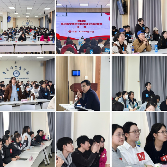 4月25日,齐齐哈尔医学院第四届临床医学类学生医学理论知识竞赛决赛在形态楼101智慧教室举行。教务处、各相关二级学院及附属医院负责人、教师代表齐聚一堂,共同见证这场医学知识的巅峰对决。颁奖典礼由教务处副处长秦伟主持,教务处副处长王秀清全程参与活动并致辞。
