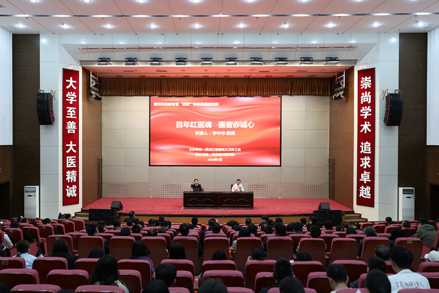 讲座中,李中华教授以《百年红医魂,医者赤诚心》为题,全面回顾了红医溯源、红医百年与红医传承的光辉历程,系统阐释了红医精神的深厚底蕴与时代价值。整场讲座主题鲜明、内涵深刻、史料翔实、感人至深,既有历史厚度,又有思想深度,更有人文温度,为在场师生带来了一场思想的盛宴、精神的洗礼。