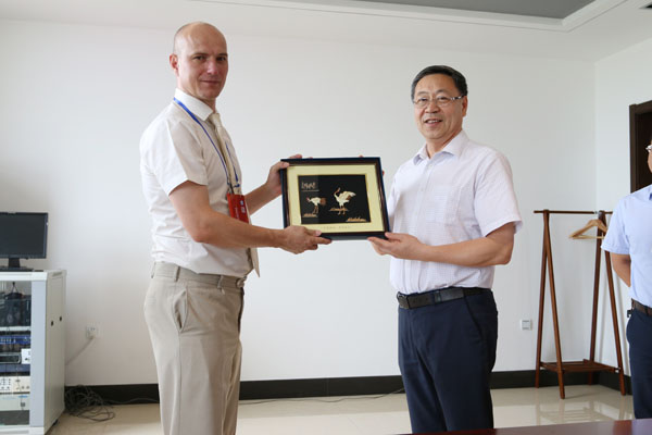 学院副院长丛明宇向外宾赠送礼物