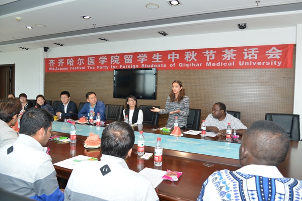 会上,刘吉成院长向外籍师生致以节日问候和祝福,并讲述了中国传统节日——中秋节的由来和历史。在热烈祥和的气氛中,刘吉成院长叮嘱同学们不仅要努力学习医学知识,还要多学习中国传统文化,医者仁心,用一颗善良的心,学成回国后为本国人民服务。