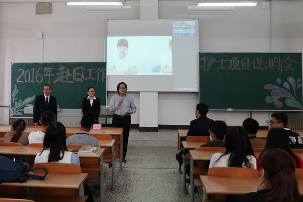 来访期间,日本海老原医疗集团与3名即将于今年10月赴日学习的学生签订了赴日留学意向书,并与将赴日学生就今后的语言学习、所需费用、就业前景、工作待遇等问题进行了详细交流。同时,日本海老原医疗集团吉井胜行干事长为2016级护理学专业学生进行了赴日工作护士项目说明会,针对学生到日本后的学习、生活、工作等问题作了详细说明。会后,吉井胜行干事长看望了赴日工作护士项目日语培训班学员。