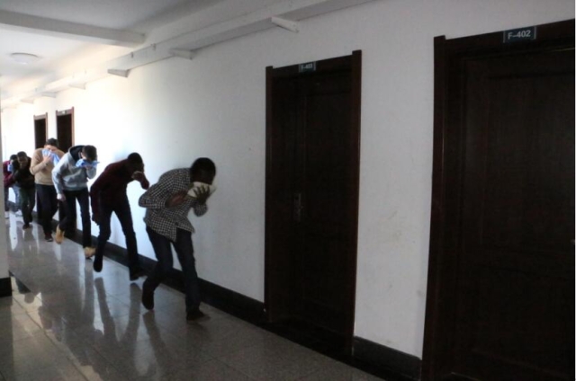 为提高留学生的安全防范意识与自我保护能力,近日,我处组织2016级留学生开展了安全教育讲座及消防安全疏散演练。