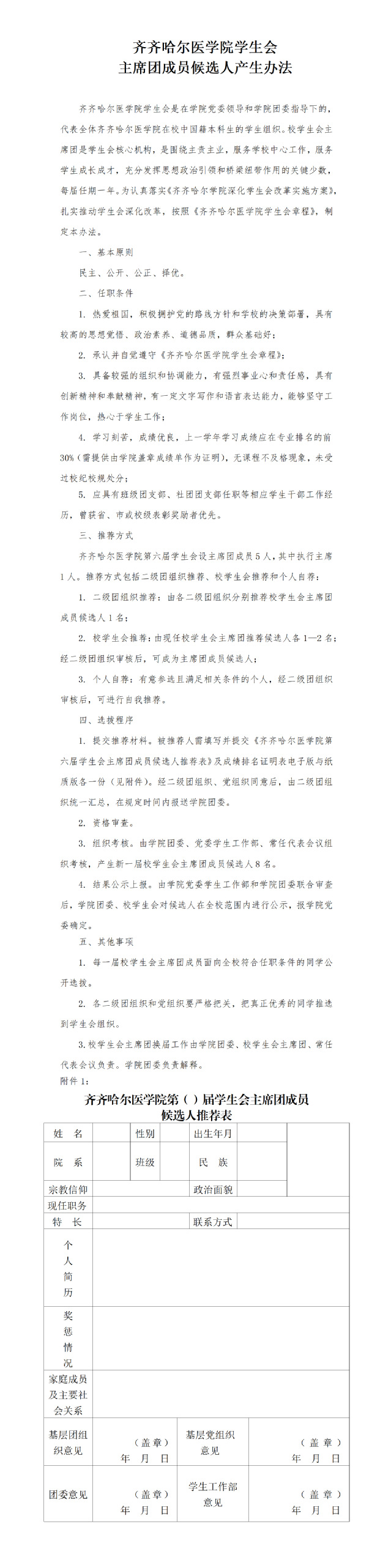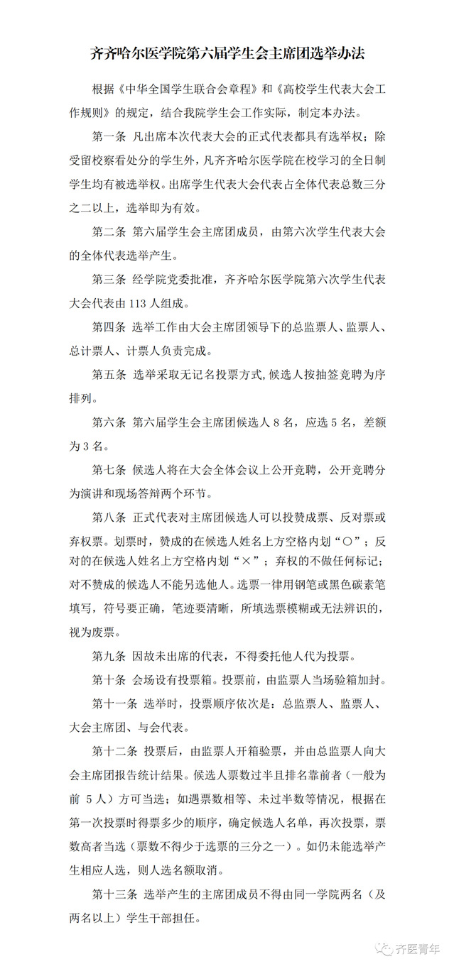 6、选举产生齐齐哈尔医学院第六届学生会主席团;