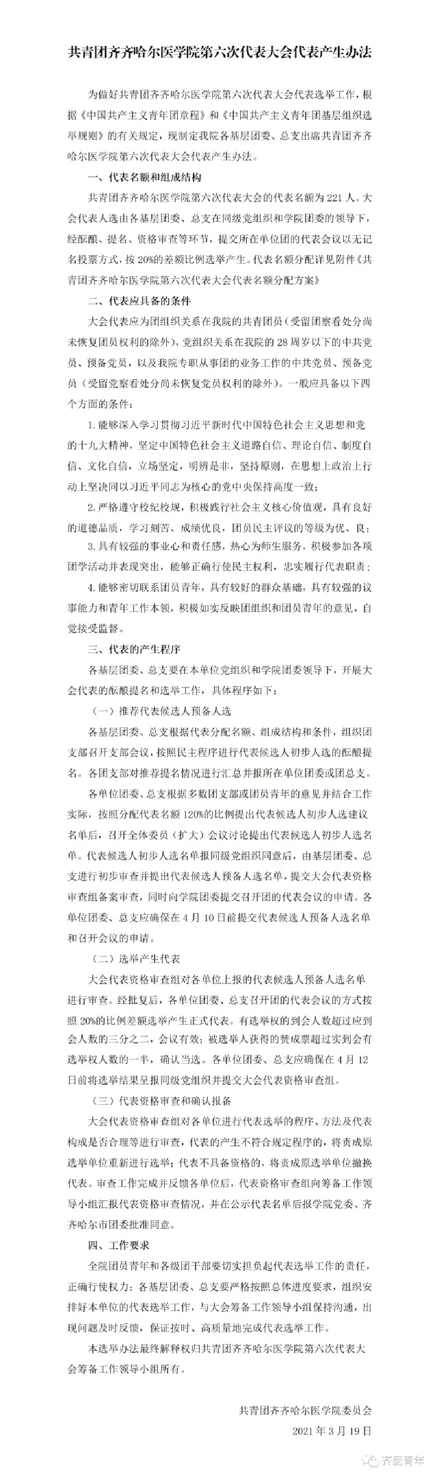 https://news.qmu.edu.cn/2021/0517/c306a148146/page.htm(共青团齐齐哈尔医学院第六次代表大会胜利闭幕)