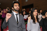 院徽(标)颜色由科技蓝、纯洁白和活力红三色构成。蓝色象征医学教育的科学、严谨、智慧和理性,白色象征医术的圣洁和高尚的医德,红色象征医学教育事业发展的勃勃生机。