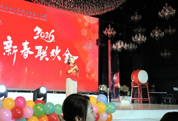 凯歌辞旧岁,瑞雪迎新春。2月10日下午,在新春佳节即将来临之际,齐医附属二院在大金山神鹤酒店5楼宴会厅举办2026年新春联欢会,党委书记刘增良,院长、党委副书记武立刚等全体领导班子成员及数百名职工及家属欢聚一堂,共迎新春佳节,医院办公室副主任王志超、宣传科赵萌主持活动。