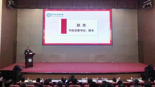院徽(标)颜色由科技蓝、纯洁白和活力红三色构成。蓝色象征医学教育的科学、严谨、智慧和理性,白色象征医术的圣洁和高尚的医德,红色象征医学教育事业发展的勃勃生机。