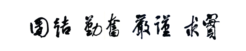大学至善:语出“四书”中的《大学》,意为大学的宗旨在于弘扬光明正大的品德,在于使人弃旧图新,达到最完善的境界。